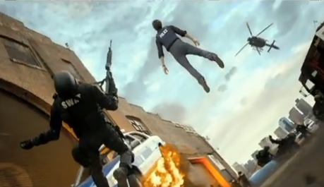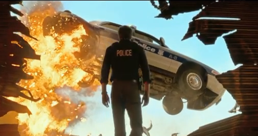 The moment Nick wakes up after his death, he walks through the place where he was killed – the warehouse and its siege setting. And its kind of beautiful. Everything that took place the second he died is frozen; the explosions of fire, cars flying through the air, people falling – its all solid. As Nick get pulled up into the afterlife, he passes an aircraft which is caught in suspension also. I revelled in this part of the movie. Non-movement special effects, the fascinating dynamic of something huge going down – but frozen momentarily. Lovely use of special effects there.