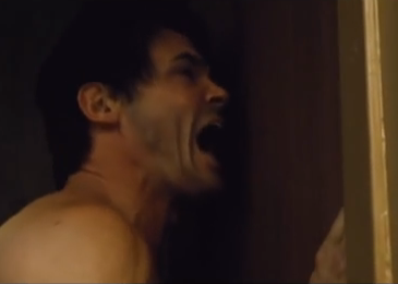 We watch as Joe begins to ‘lose it’ – at one point he lays on the ‘hotel room’ bathroom floor with a rat crawling all over him, whilst prodding a box containing the rat’s newborn rodents. Gross! But he shifts from insanity to sanity with the help of the television cut into his bedroom wall..