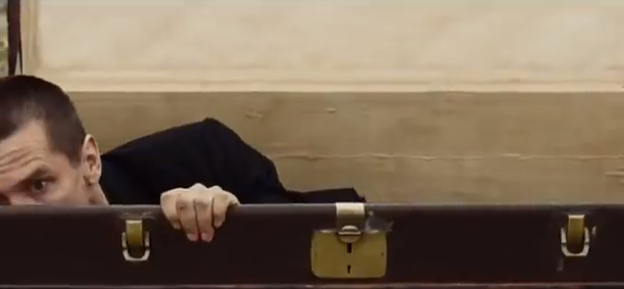 He is drugged, and then he awakes – curled up – in a posh trunk. As he rises from the box, you can see he has changed. Freshly shaven, new haircut, dressed in a smart suit. And he has been left with a pouch of cash – and a mobile phone. How very cryptic..