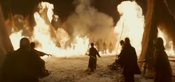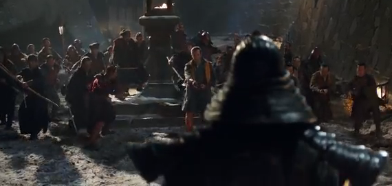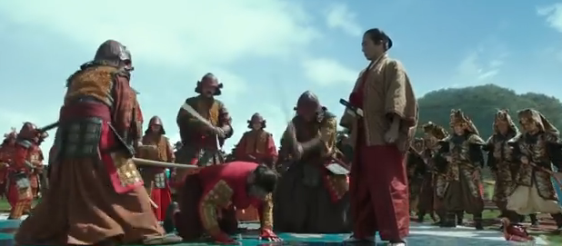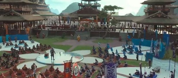 The battle scenes between the enemies are steeped in rich tapestries, bright outfits and hundreds of weapons. This is all cradled in some lovely set; a massive battle ground lays the scene splendidly. And of course, costume..