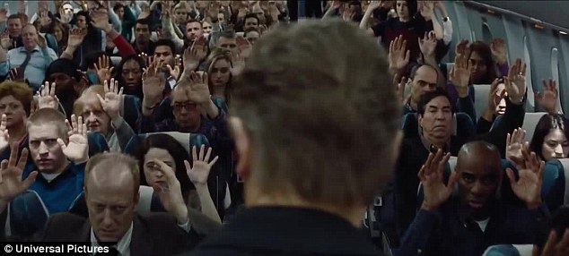 One scene sees the discovery of a bomb onboard the aircraft – and the panic kicks off BIG TIME.