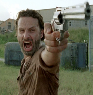 Mobile phone pinned to his ear, whilst wielding a gun