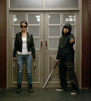 Cue panic, fight and a lot of blood as the petite bi-atch smashes her way through a gang of men with more aggression than a City worker in rush hour. This scene is one of the more attention-grabbing, mainly due to the build-up of a sweet young woman sitting on a train who blends in with the other commuters.. until she extracts two hammers from her handbag. There’s always something dynamic too about a woman getting violent.