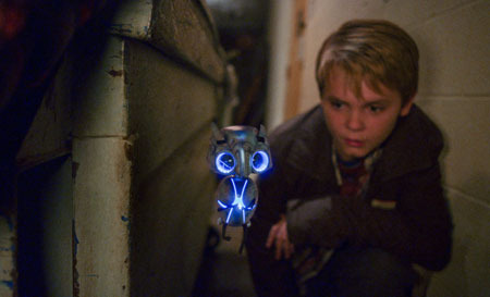 So this wouldn’t be first choice on my rental list, but the movie brought a smile to my face whenever Echo was on screen. And it was all down to the lush special effects used to create the cute little bugger. Just a blink of those sad wide eyes and a tilt of his head, and I went all gooey. I was actually captivated by Echo whenever he was on screen; he radiates with a gorgeous blue-purple colour, makes cute buzzing sounds, etc. He’s bloody adorable, I was sat with a smile on my face during his main scenes. Yes, call me a Homo (I am), or soppy (I am), but I loved Echo – and wanted to take him home. Seriously though, my eyes were glued to the screen as I absorbed the warmth of the character – he was definitely the best part of this movie. Yet this is why my opinin of Earth To Echo is split; a lovely colourful character shoved into a slack film whose approach to cinema is to borrow ideas from other films.